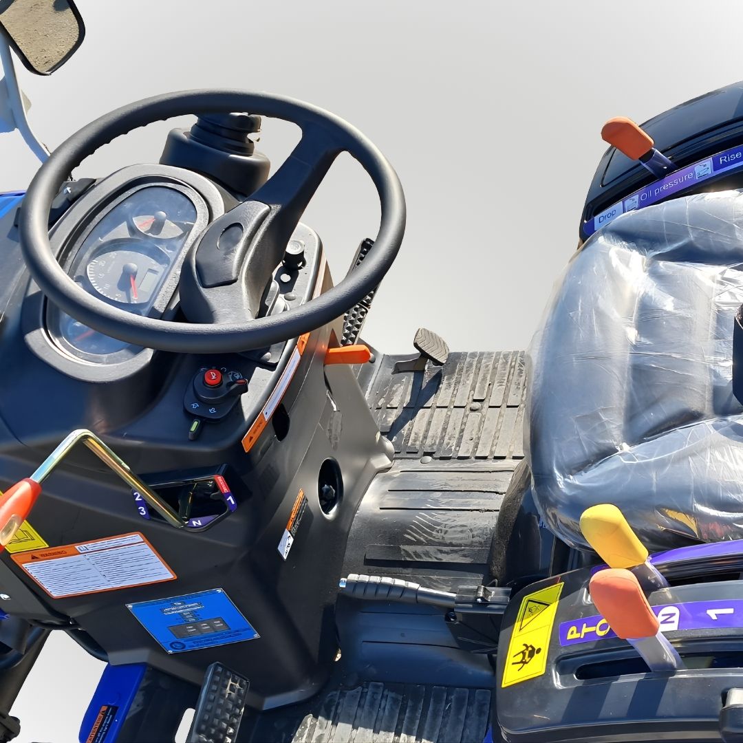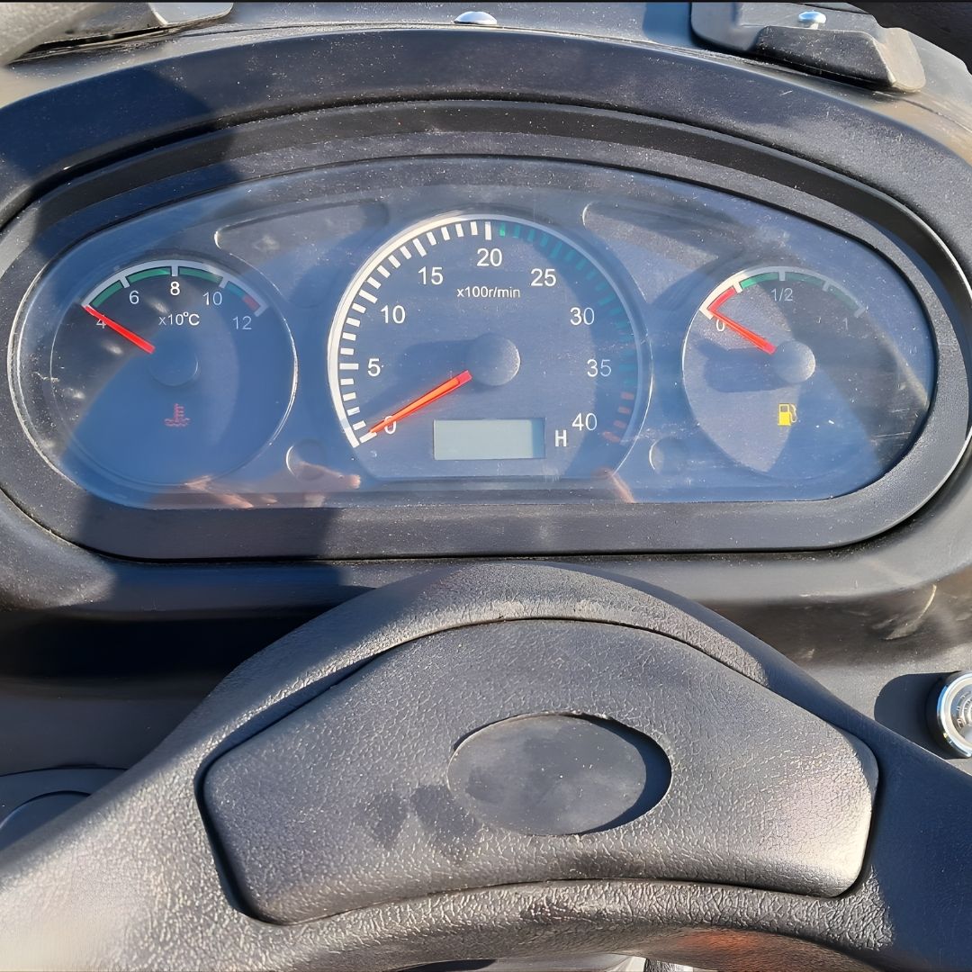 Für ein angenehmes und präzises Fahrverhalten sorgt die Servolenkung, die auch bei längeren Einsätzen oder auf engem Raum ein komfortables Manövrieren ermöglicht. Das 9+3 Synchrongetriebe bietet eine praxisnahe Gangabstufung und erlaubt eine optimale Anpassung an unterschiedliche Arbeitsbedingungen – sowohl im Feld als auch im Hofeinsatz.