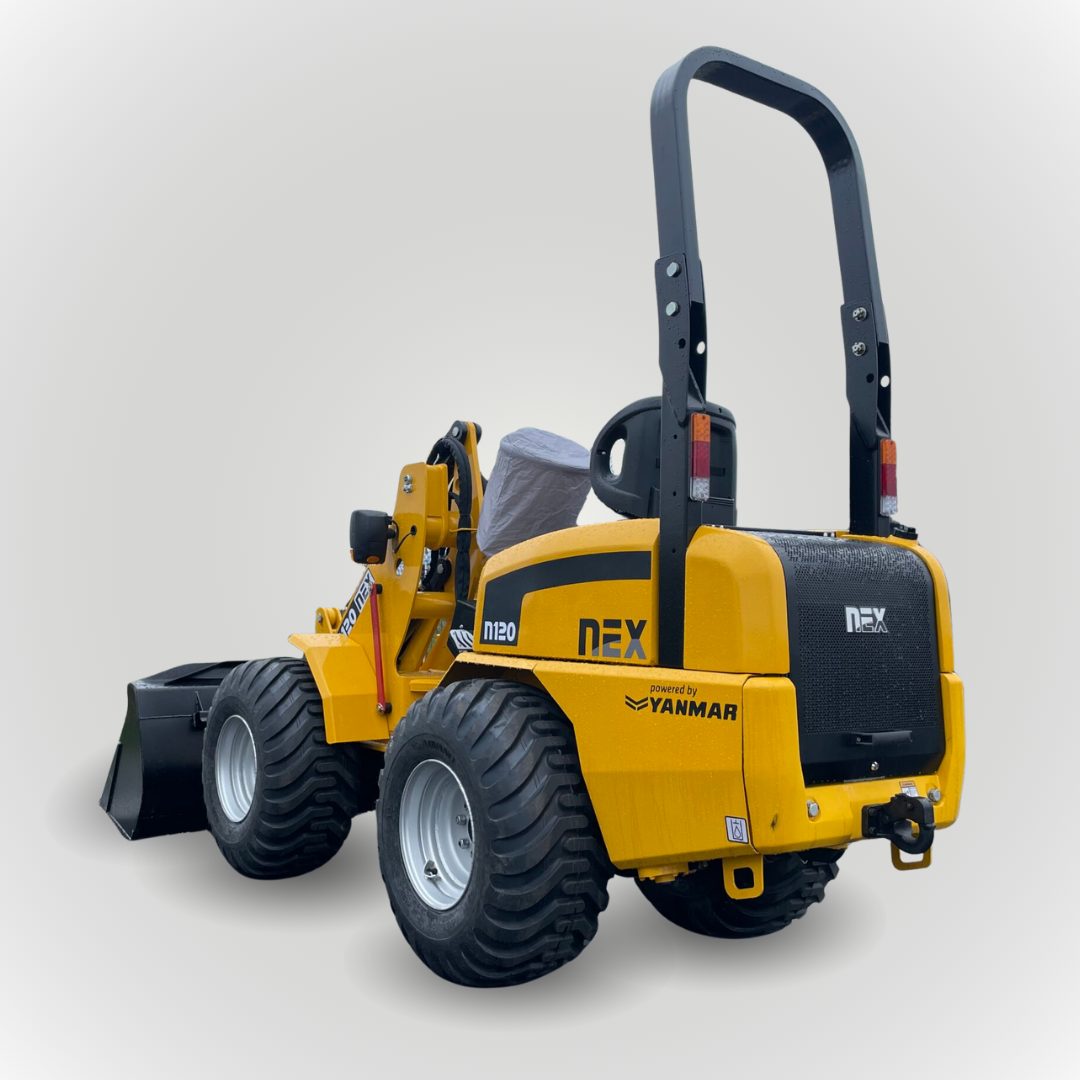 Angetrieben wird der NEX N120 von einem robusten und bewährten japanischen Yanmar-Motor des Typs 3TNV88. Zwei unabhängige Pumpen (Hydraulik- und Fahrpumpe) sorgen für eine präzise und effiziente Steuerung. Die fortschrittliche Aufhängung mit doppeltem Schwenkgelenk gewährleistet hohe Stabilität und sichere Manövrierfähigkeit selbst in schwierigem Gelände.