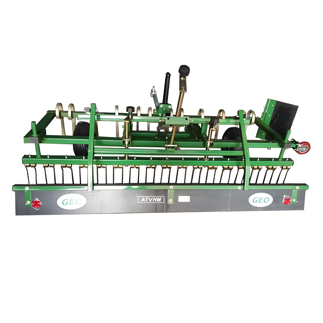 Der Bahnplaner Geo ATV HM wird von ATVs, Geländewagen oder Gartentraktoren leicht gezogen. Dieser Bahnplaner ist für die tägliche Dauerpflege für fast alle Böden geeignet. Das Lockern, Mischen und Glätten erfolgen in einem Arbeitsgang. Die groben Zinken sorgen für das Auflockern des Bodens. Die feineren Doppelfederzinken für das Durchmischen des Bodens. Das nachfolgende Planierbrett sorgt für das Ebnen und Ausgleich von Unebenheiten.