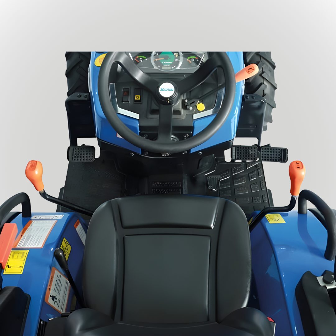 Die Seitenschaltung sorgt für mehr Bedienkomfort und eine ergonomische Handhabung. Dank schwenkbarem Arbeitsscheinwerfer hinten, zwei Frontgewichten à 15 kg und stabilem Überrollbügel mit Rundumleuchte ist der Traktor sowohl funktional als auch sicher ausgestattet. Eine analoge Kraftstoffanzeige rundet die praxisgerechte Ausstattung ab.